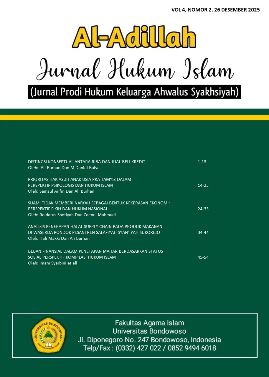 AL-ADILLAH: Journal of Islamic Law (p-ISSN 2776-4710, e-ISSN : 2774-504X), is a journal published twice a year (in January and August) by the Family Law Study Program, Faculty of Islamic Religion, Bondowoso University, Indonesia. The specifications of this journal are Islamic Law Studies which include Islamic family law, Islamic economic law, Islamic criminal law, Islamic constitutional law, zakat and waqf law, and contemporary Islamic legal thought studies. This journal serves as a medium to explore critical thinking in the field of Islamic Law. This journal is open to all academics, practitioners, scholars, and students with the specification of Islamic Law studies. ideas that include research articles, conceptual ideas, literature, and practical experience